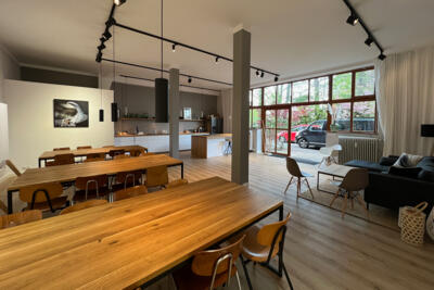 Das Basement befindet sich direkt unter dem Freiraum und eignet sich daher bestens als Erweiterung, Breakoutroom oder Teamaufenthalt. Selbstverständlich ist der Raum aber auch als eigenständige Galerie, Showroom, Pop-up-Store, etc. buchbar.